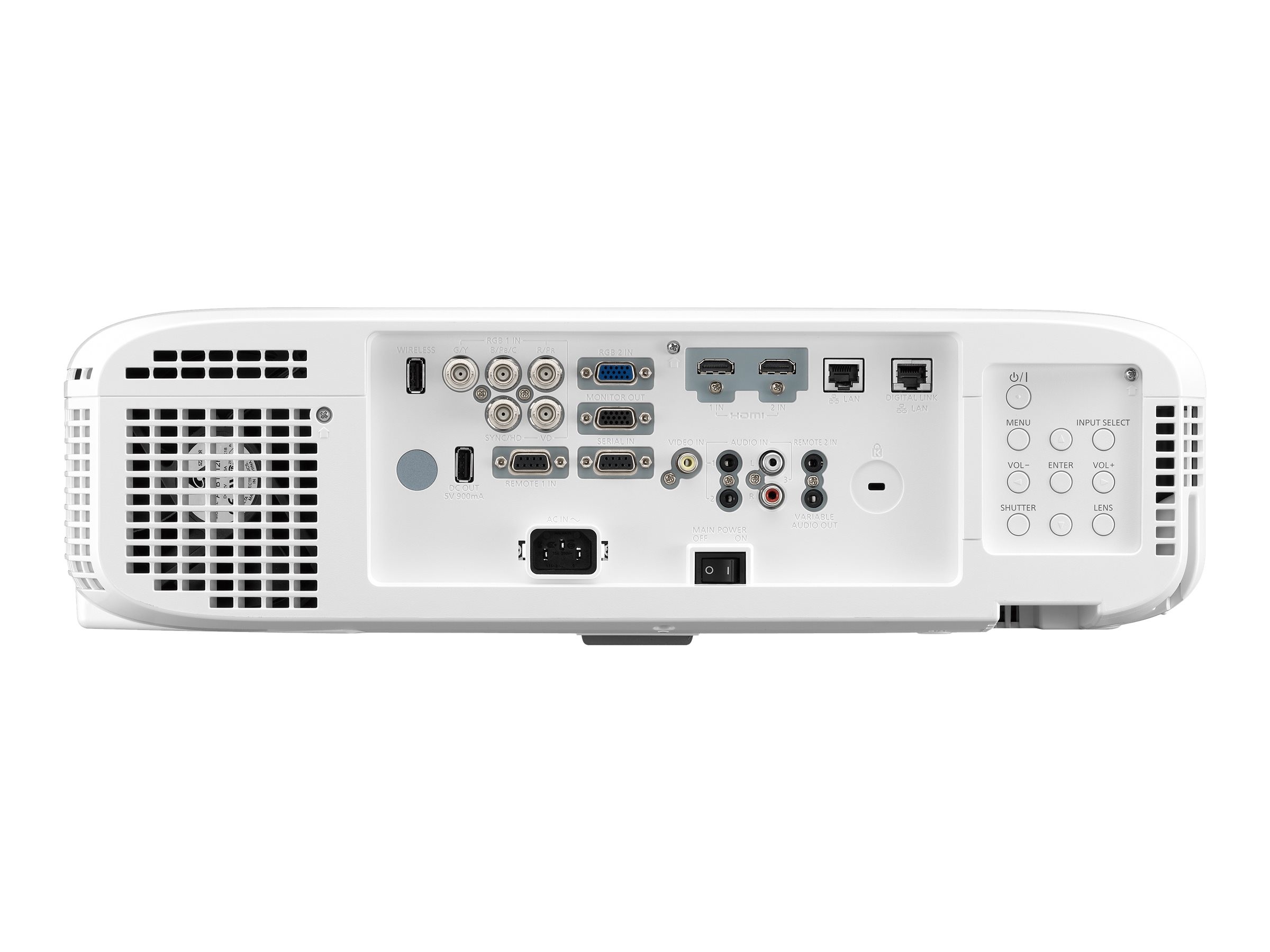 2 x USB - 4-polig USB Typ A ¦ 2 x HDMI-Eingang - 19-poliger HDMI Typ A ¦ 1 x RGB-Eingang - 15-polige HD D-Sub (HD-15) ¦ 1 x Composite-/Component Video-/ RGB-Eingang - BNC x 5 ¦ 1 x Composite-Video-Eingang - RCA ¦ 1 x Eingang Fernbedienung - D-Sub (DB-9), 9-polig (Verwaltung) ¦ 1 x RGB-Ausgang - 15-polige HD D-Sub (HD-15) ¦ 2 x Audio Line-In - Mini-Phone Stereo 3,5 mm ¦ 1 x Audio Line-In - RCA x 2 ¦ 1 x Audio Line-Out - Mini-Phone Stereo 3,5 mm ¦ 1 x RS-232C-Eingang (seriell) - D-Sub (DB-9), 9-polig (Verwaltung) ¦ 1 x Eingang Fernbedienung - mini-Telefon 3,5 mm (Verwaltung) ¦ 1 x Netzwerk - RJ-45 (Verwaltung) ¦ 1 x Netzwerk - RJ-45